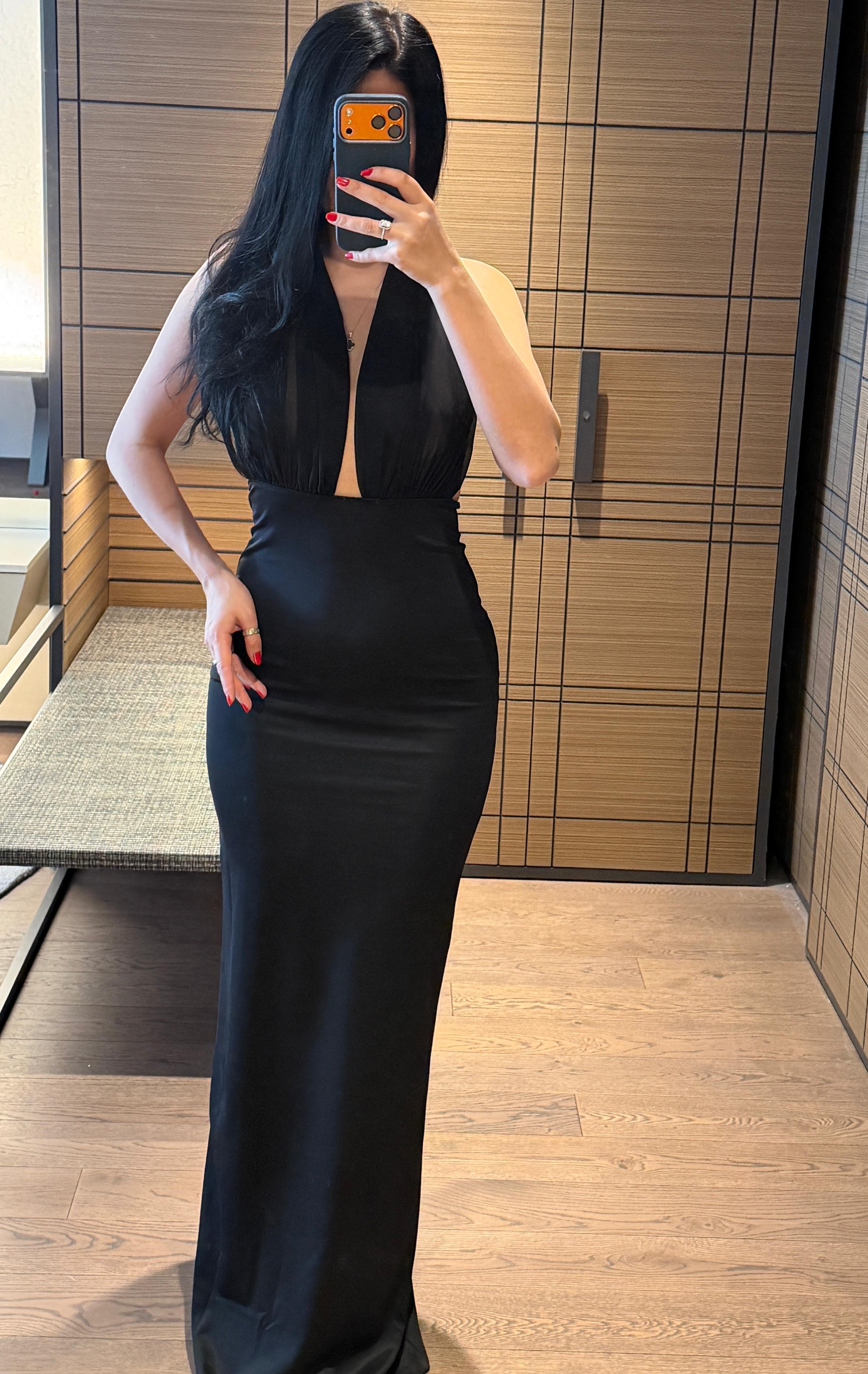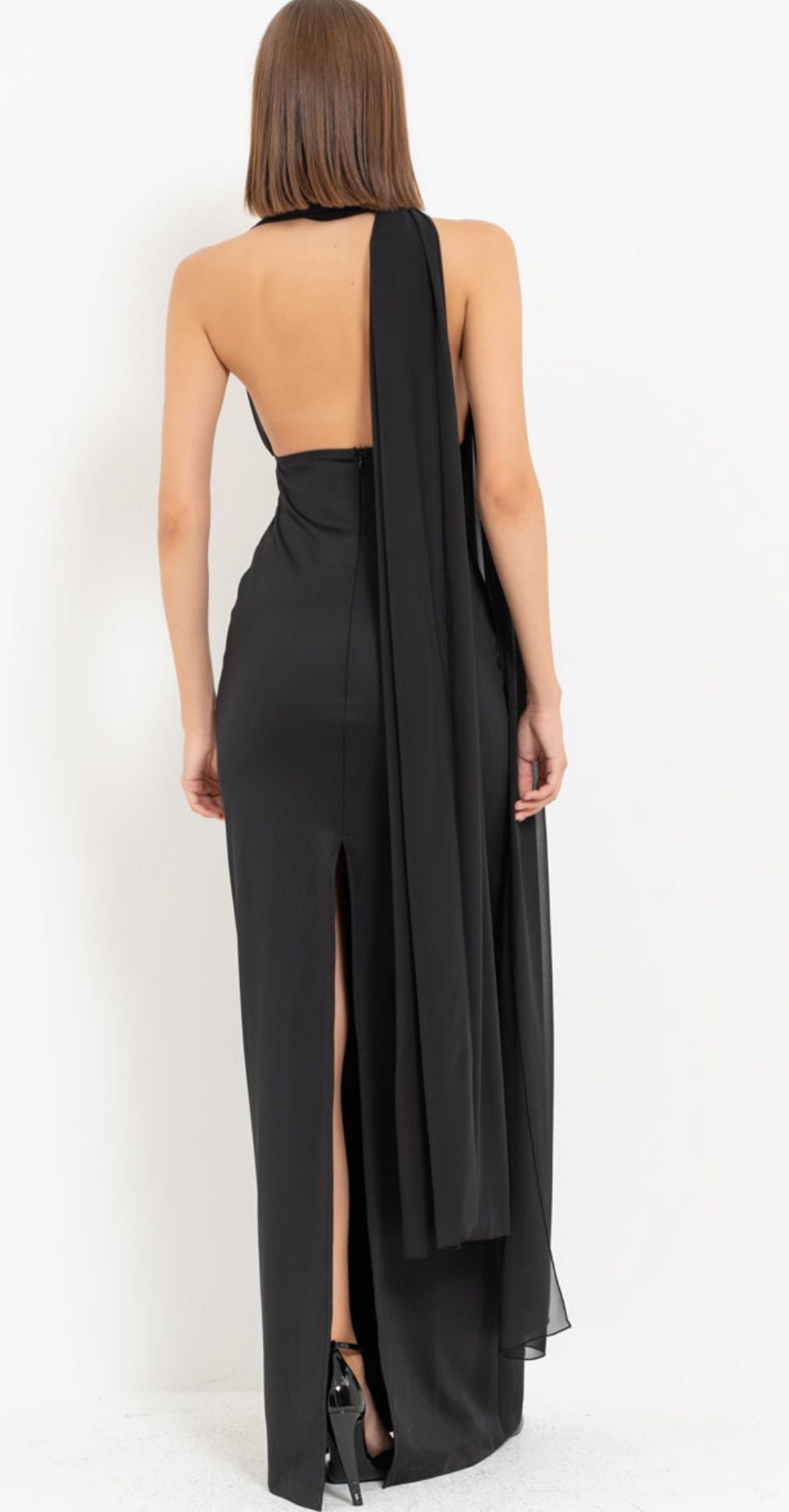 ROBA BAGLAMALİ YİRTMAÇLİ UZUN ELBİSE